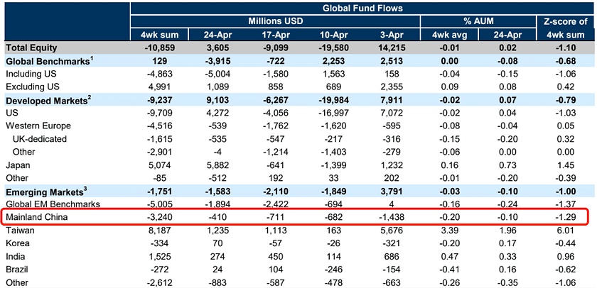 EPFR口径下中国概念基金连续7周流出,与北向资金创纪录的流入形成对比
