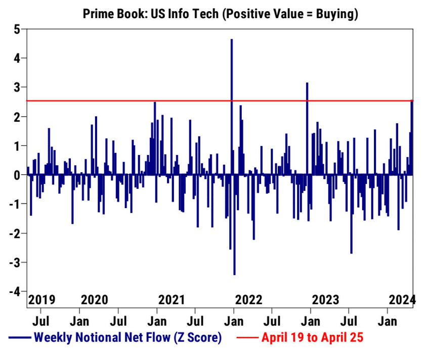 对冲基金连续第二周大幅净买入美股,五个月来最快,这主要是由于多头买入和空头回补(比例为7比1)推动的。主要集中在信息技术和医疗保健行业,消费品、能源等有所卖出。