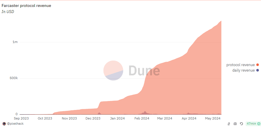 Farcaster在今年随着base生态的爆发迎来了一波强劲的增长,新用户的涌入带来了协议收入的提升。
