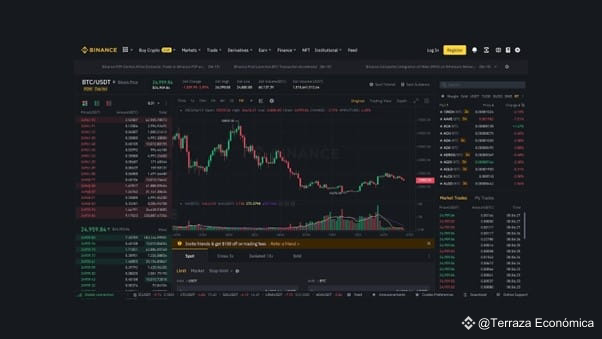 El libro de órdenes, visible en la página de negociación, muestra las órdenes de compra y venta actuales, ayudando a los traders a tomar decisiones informadas.
