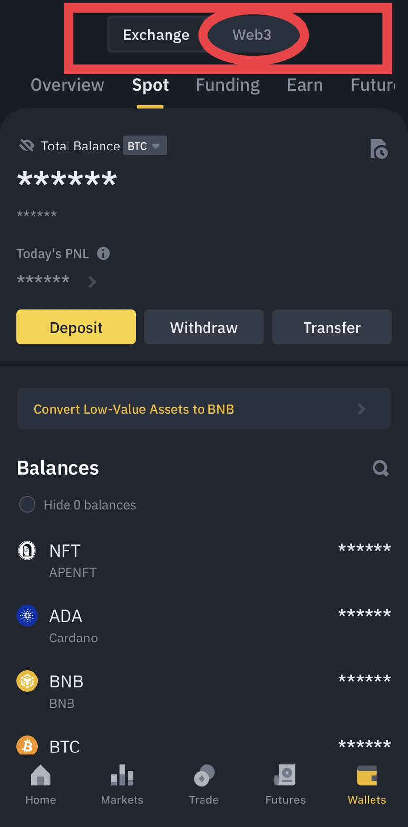 4. Basculez le portefeuille d'Exchange vers Web3 comme vous le voyez ici