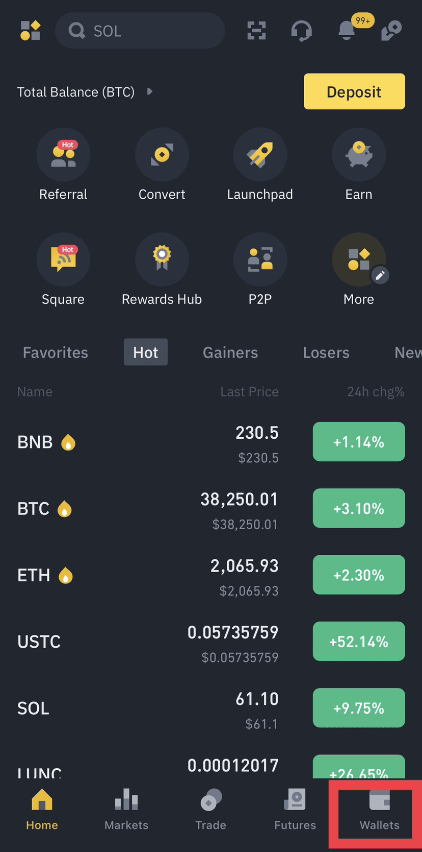 3. Accédez au portefeuille comme vous pouvez le voir sur cette image