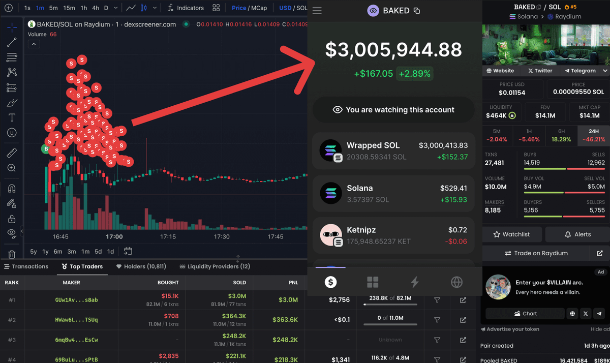 Avec un œil aiguisé, un tireur d'élite a investi 70 $SOL pour acquérir 81,78 millions de $BAKED et les a retournés pour 21 581 $SOL.