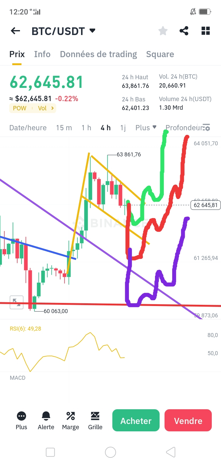 ..//De plus, confirmer que le canal a été rompu nécessite que Bitcoin descende au niveau de 61 500$ au maximum puis remonte directement et rapidement vers les niveaux de 65 000$, donc tracez la ligne rouge et suivez-la bien et en continu, et en d'ailleurs, la ligne rouge représente les niveaux entre 58 000 $ et 60 000 $...