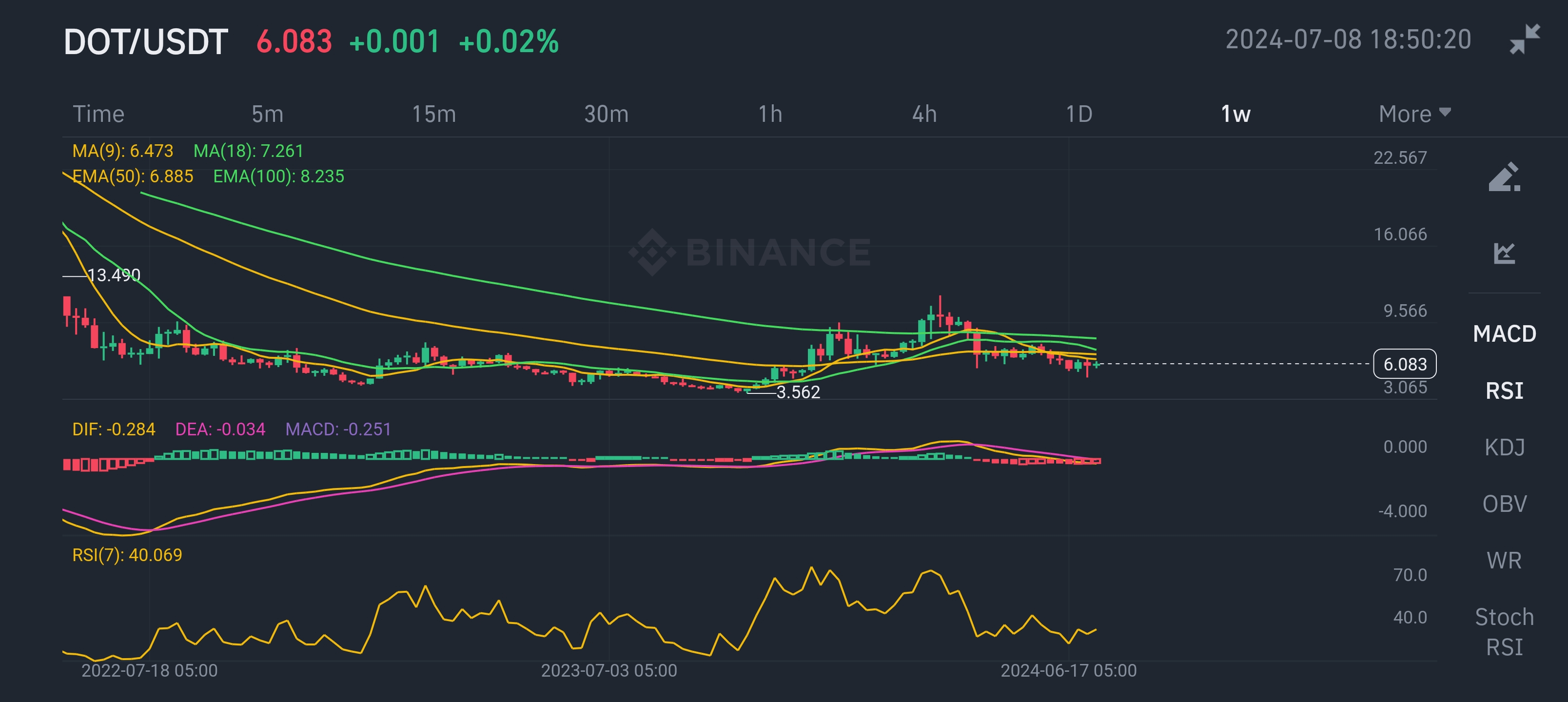 Le graphique sur 4 heures fournit des informations supplémentaires sur l'évolution des prix de Polkadot. Après une cassure au-dessus du canal des prix descendant, le prix a enregistré une hausse notable, indiquant une reprise de la demande et de la pression d'achat, probablement tirée par les activités sur les marchés perpétuels. Le DOT est maintenant confronté à une zone de résistance critique, qui comprend le niveau de résistance de 6,3 $ et le précédent sommet majeur de 6,428 $. Si Polkadot récupère ce seuil de résistance, cela pourrait déclencher une légère compression à découvert et modifier le sentiment du marché, conduisant à une tendance haussière soutenue vers la région de résistance de 7 $. Cependant, si le prix est rejeté à ce niveau, une phase de consolidation à court terme est attendue dans la fourchette de 6,3 à 5,4 dollars. Par conséquent, l’évolution des prix de Polkadot dans les prochains jours sera cruciale pour déterminer sa trajectoire.