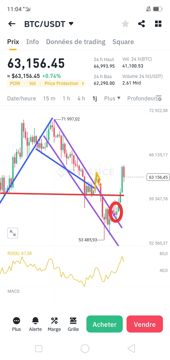 ..//Briser le niveau de 65 000 $ nous mènera aux niveaux de 68 000 $, qui est l'objectif technique complet du modèle de drapeau haussier qui a duré plus de 36 jours...