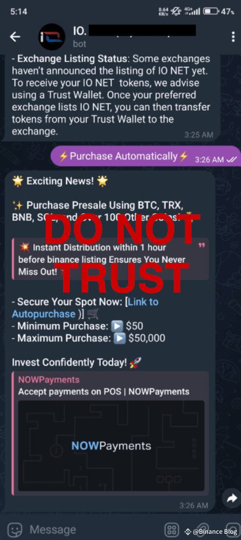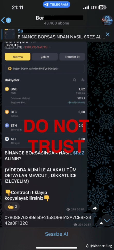 Cette section est consacrée aux faux tokens. Les escrocs créent des comptes/groupes/sites Web Telegram temporaires comme canaux faisant la promotion de faux tokens et trompant les internautes en leur promettant des rendements exceptionnellement élevés, souvent sous la forme de faux tokens qui n’ont aucune valeur réelle et aucune liquidité.