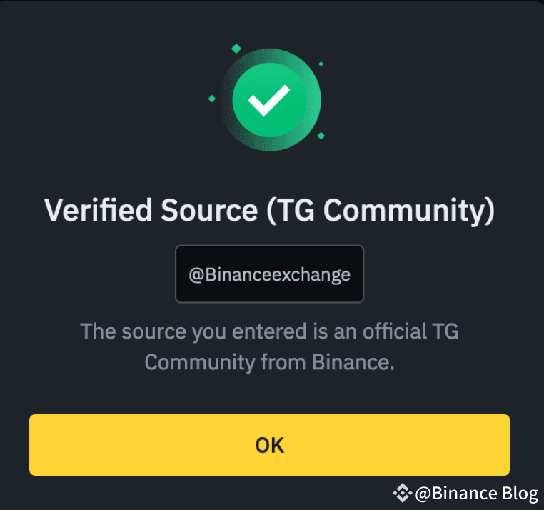 Nous proposons également un canal de vérification nommé Binance Verify, très utile pour vérifier les comptes sur les réseaux sociaux. Entrez le nom d’utilisateur dans la barre de recherche pour afficher le résultat de la vérification. L’image ci-dessous illustre l’écran qui s’affiche lorsque le nom d’utilisateur du compte Binance est authentique. Si votre contact sur TG vous envoie une capture d’écran prouvant que son compte est vérifié afin de vous mettre en confiance, pensez à toujours recouper la source vérifiée avec le nom d’utilisateur du compte TG pour vous assurer qu’elles sont bien identiques.
