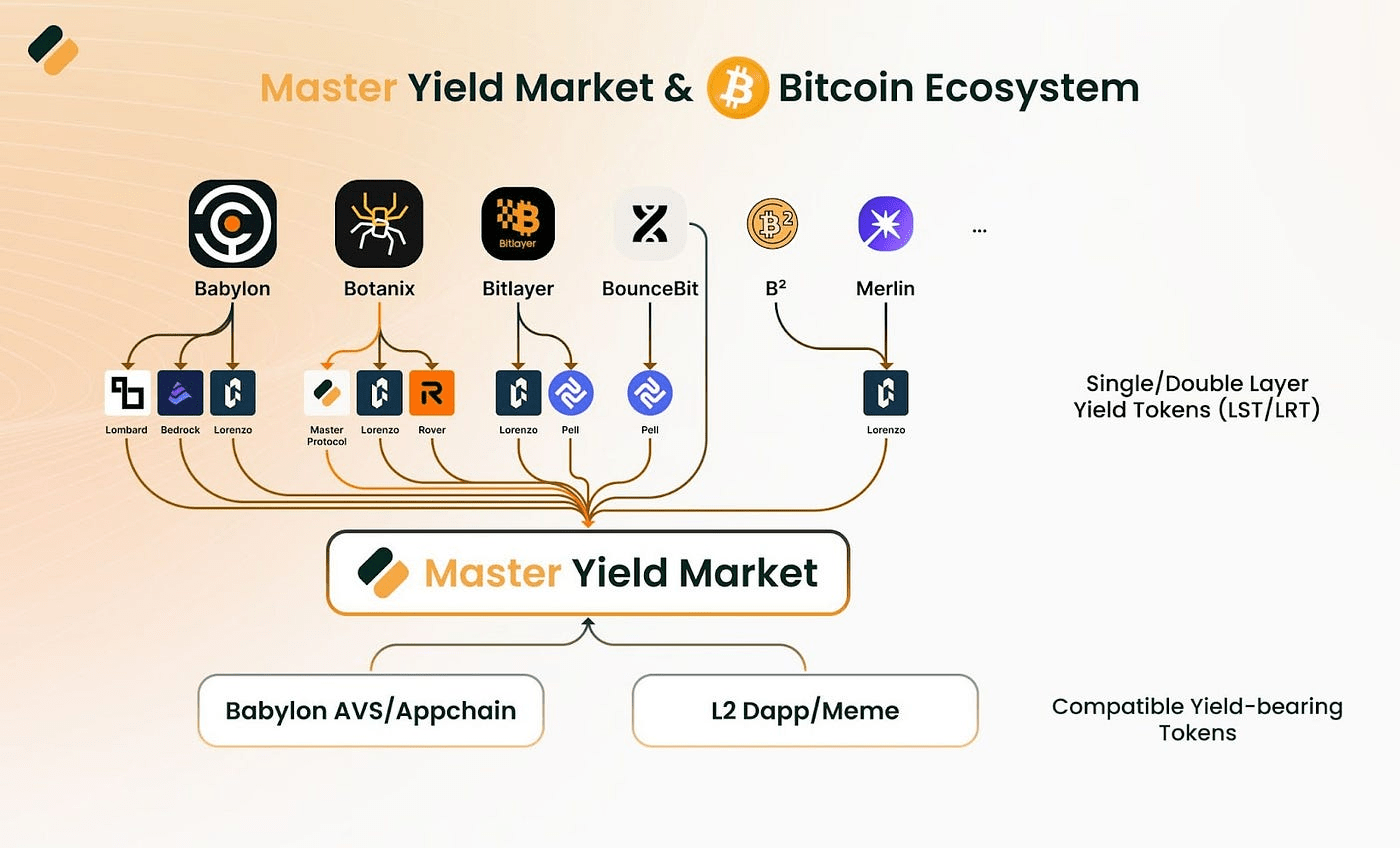 🔶 Positionnement stratégique : Le Master Yield Market est conçu pour révolutionner l'écosystème Bitcoin en intégrant une gamme diversifiée d'actifs générateurs de rendement. Notre plateforme vise à être la pierre angulaire du trading de rendement Bitcoin, en améliorant la liquidité et en optimisant l'efficacité du capital de manière sans précédent.