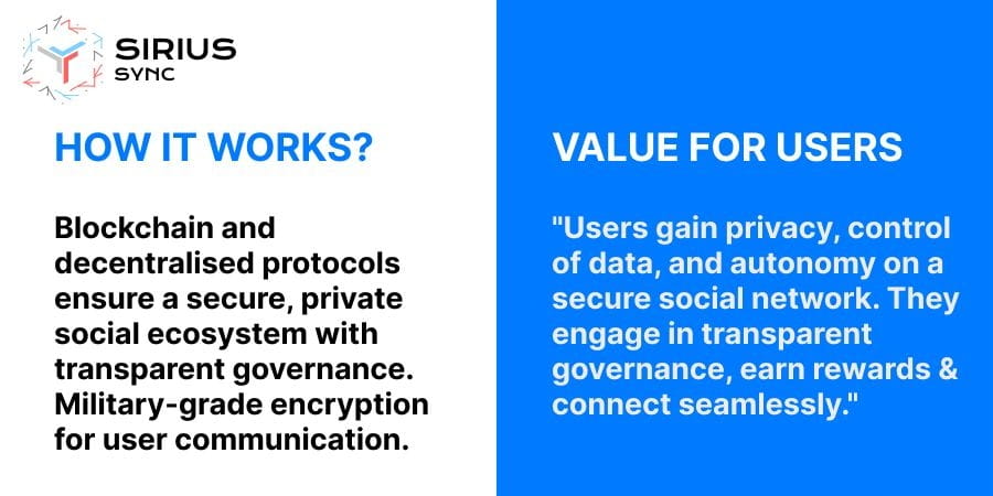 Médias sociaux Web3 : préparez-vous à vivre un changement de paradigme dans l'interaction en ligne sur la plateforme de médias sociaux Web3 de Sirius Sync. Dites adieu aux vulnérabilités des données et accueillez un royaume de véritable liberté numérique.