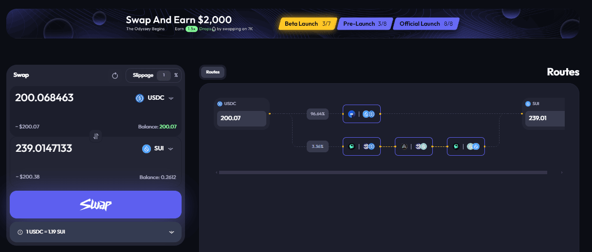 🚀 Nous sommes ravis d'annoncer le lancement de la version bêta de 7K Aggregator sur le réseau principal Sui du 3 juillet au 3 août 2024.