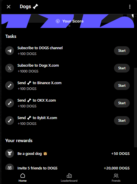 Avec cette dernière mise à jour, Dogs continue d'innover et d'offrir à ses utilisateurs des moyens amusants et attrayants de bénéficier de leur appartenance à la communauté Telegram. Donc, si vous cherchez à gagner des points DOGS supplémentaires et à vous connecter avec d'autres passionnés, c'est le moment idéal pour vous lancer et commencer à accomplir ces tâches sur les réseaux sociaux !