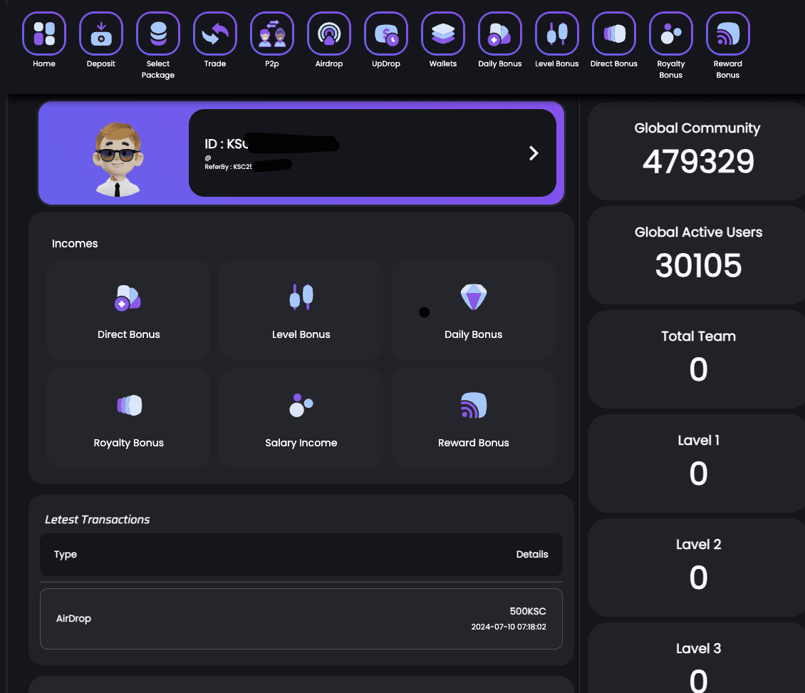 Le système semble être basé sur l'incitation de nouveaux membres à rejoindre/être référés ainsi que sur le fait que vous rechargez continuellement votre compte.