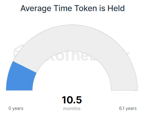 En continuant avec un graphique qui montre combien de temps un token a été détenu en moyenne. ADA a une période de détention moyenne de 10.5 mois sur les 6.1 années pendant lesquelles le token a été en circulation, ce qui donne un ratio de 0.1438. Ce ratio apparaît relativement bas par rapport à d'autres pièces comme MATIC, qui affiche un ratio de 0.2444, et LINK, qui a un ratio de 0.2131. (Notez qu'un ratio plus élevé indique une période de détention moyenne plus longue du token.)