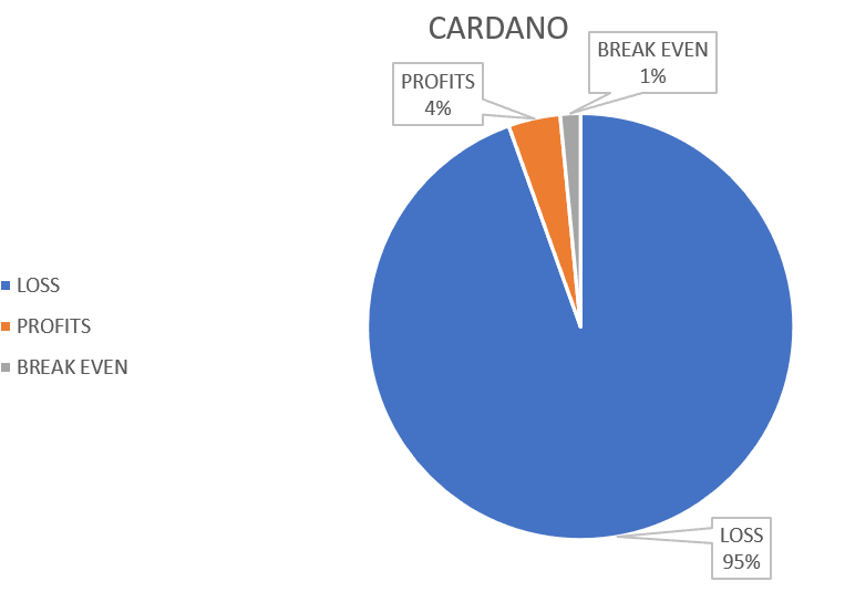 Nous pouvons observer que le nombre de comptes qui ont acheté ADA et l'ont toujours dans leur compte, a augmenté régulièrement depuis le début de la montée du marché, et cette tendance se poursuit même pendant le marché baissier. Cela peut suggérer que les gens placent leurs espoirs sur ADA pour bien performer lors du prochain marché haussier. (Veuillez noter qu'il ne s'agit pas d'un conseil financier ; je me contente d'analyser les données.)
