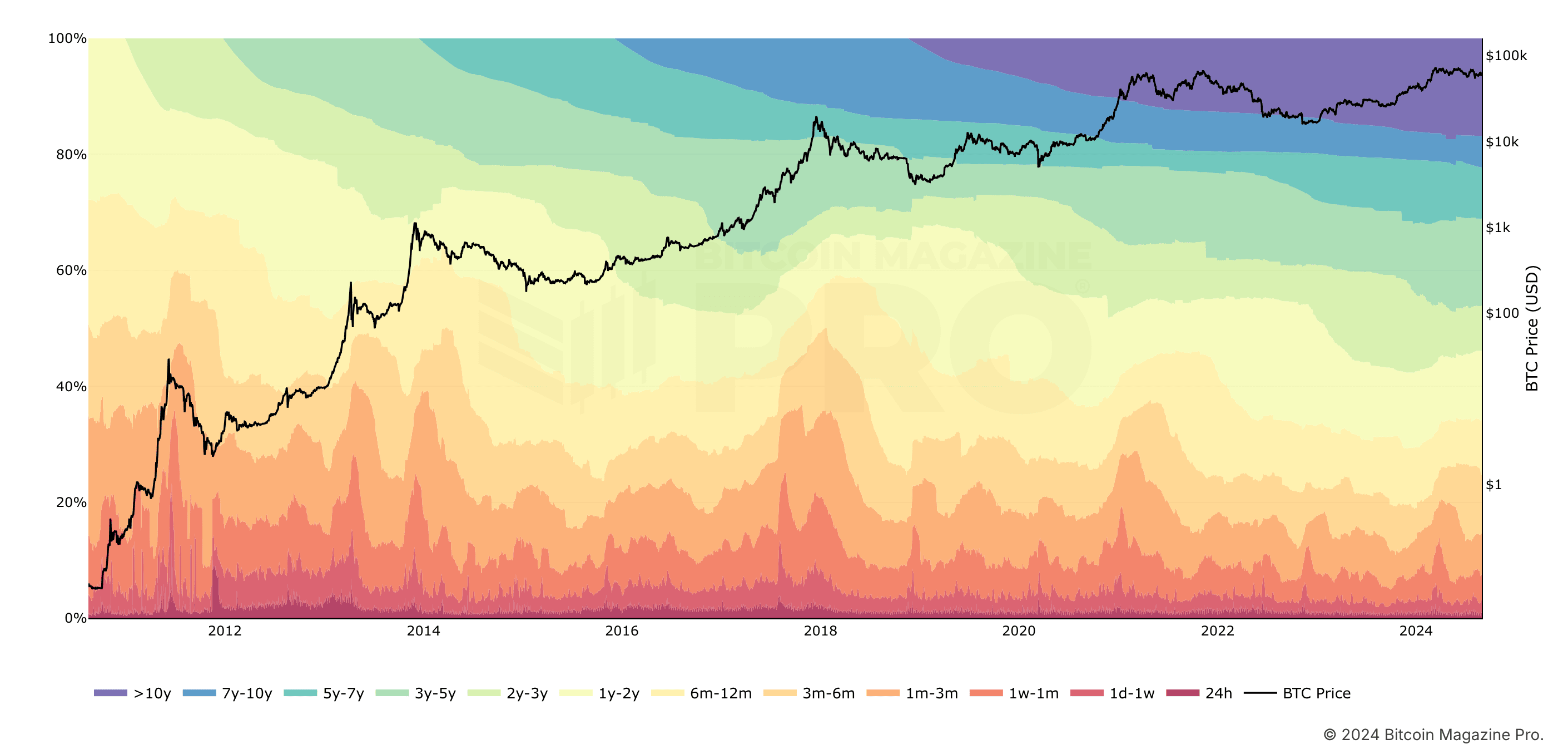 Le nombre de détenteurs à long terme augmente à chaque cycle, chaque nouvelle augmentation de prix créant moins d'investisseurs vendant.