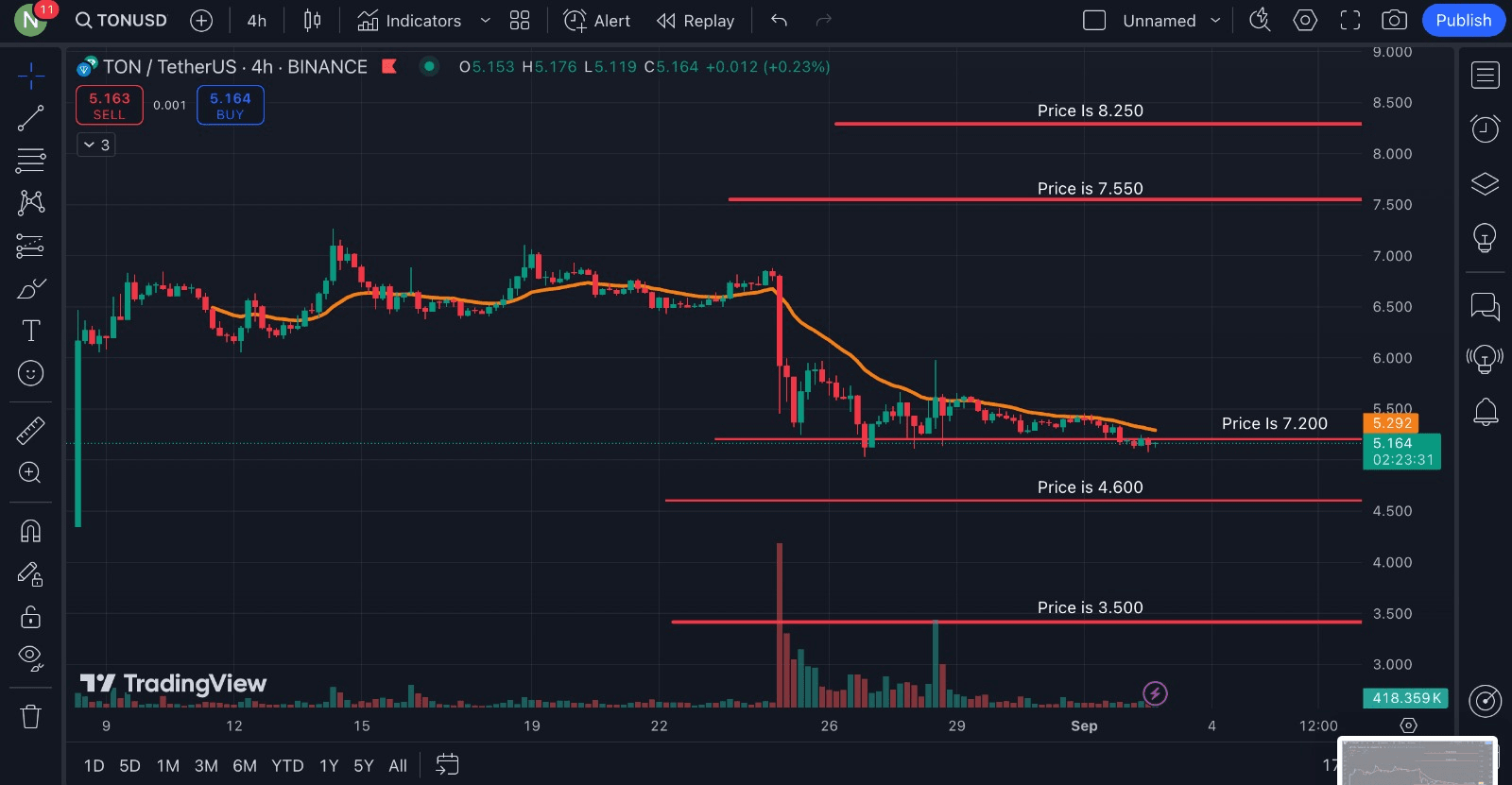 En cas de nouveaux retracements de prix, les investisseurs haussiers devront surveiller de près les niveaux de 5,15 $ et 4,87 $, les plus grands niveaux de support pour le jeton sur son graphique quotidien.#TON /$TON