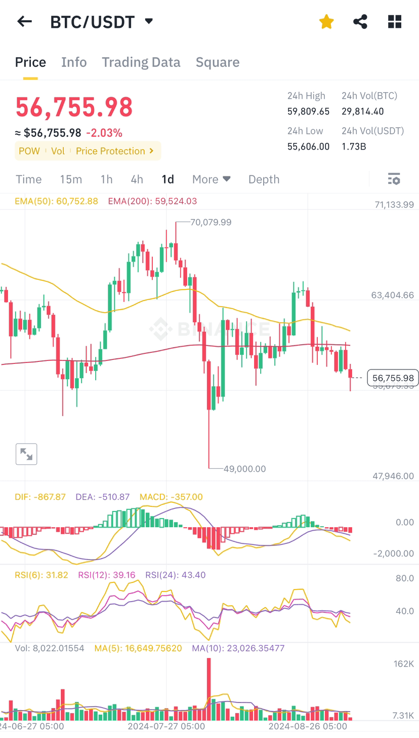 Au 4 septembre 2024, $BTC a connu un début de mois difficile, son prix étant passé sous la barre des 58 000 $, poursuivant la tendance à la baisse observée fin août. Cette baisse, actuellement autour de 57 273 $, a placé le marché à un tournant critique alors que nous nous dirigeons vers un mois historiquement difficile pour $BTC