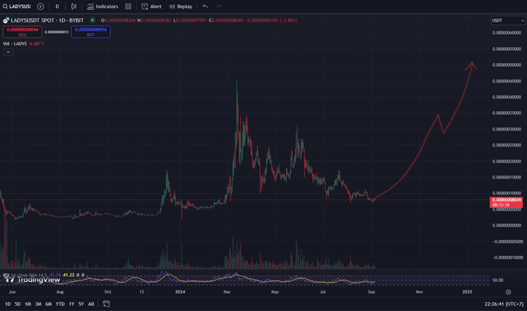 prochaine course haussière (comparable aux capitalisations boursières actuelles de certains projets comme $DOGS, $POPCAT, $BRETT, $MEW, etc.).Pendant ce temps, le potentiel de $LADYS est énorme, et nous pouvons tout à fait envisager un scénario où la capitalisation boursière atteint 1 milliard de dollars, similaire aux meilleurs memecoins du moment.
