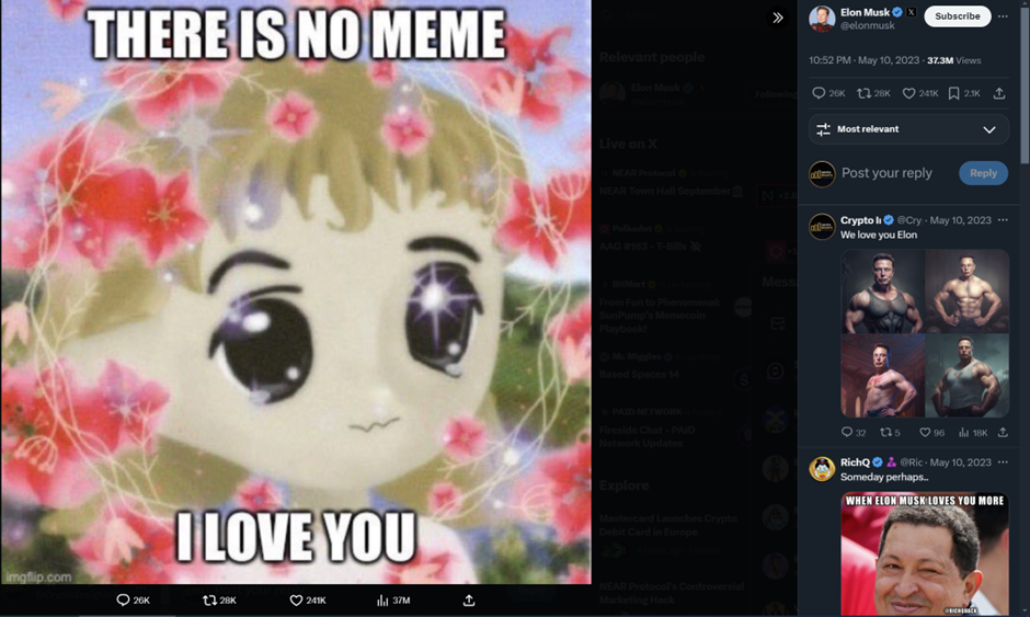 2. On ne peut pas évoquer le parcours de Milady sans évoquer le moment charnière qu'a été le tweet d'Elon Musk (https://x.com/elonmusk/status/1656326406618619910).Son soutien a propulsé LADYS sous les projecteurs, renforçant considérablement son image de marque, son succès et sa capitalisation boursière. Il ne s'agissait pas seulement d'un pic d'intérêt ; c'était une validation du potentiel du jeton et un témoignage du pouvoir de la communauté et de la culture des mèmes dans le monde de la cryptographie.