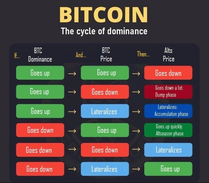 Si la domination chute, il faudra suivre le prix du BTC et #ETH pour savoir où il est le plus rentable de se positionner.