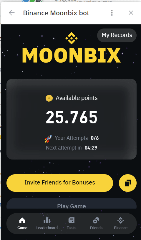 1.- Rejoignez l'aventure Moonbix via le lien suivant :