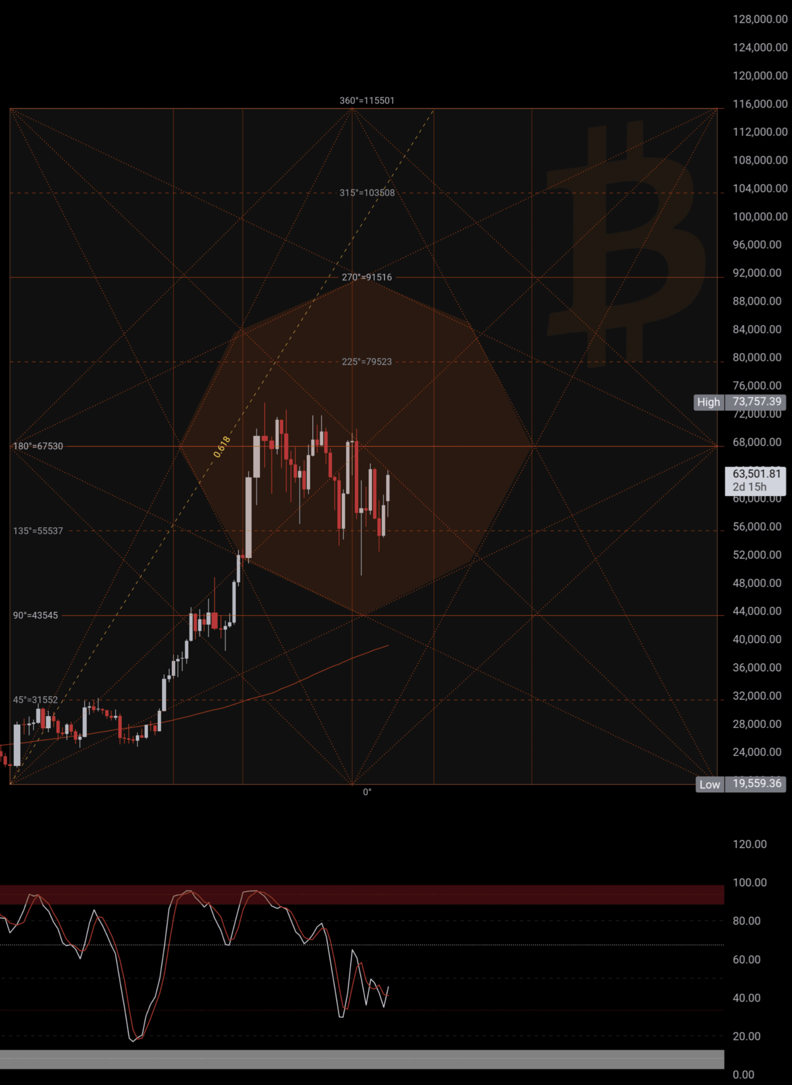 Le prochain objectif est de 91 516 $ sous un angle de 270°, suivi d'une correction rapide à 83 000 $ (par rapport au cadre quotidien).