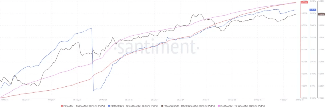 Augmentation du nombre de portefeuilles détenant plus de 10 millions de PEPE !