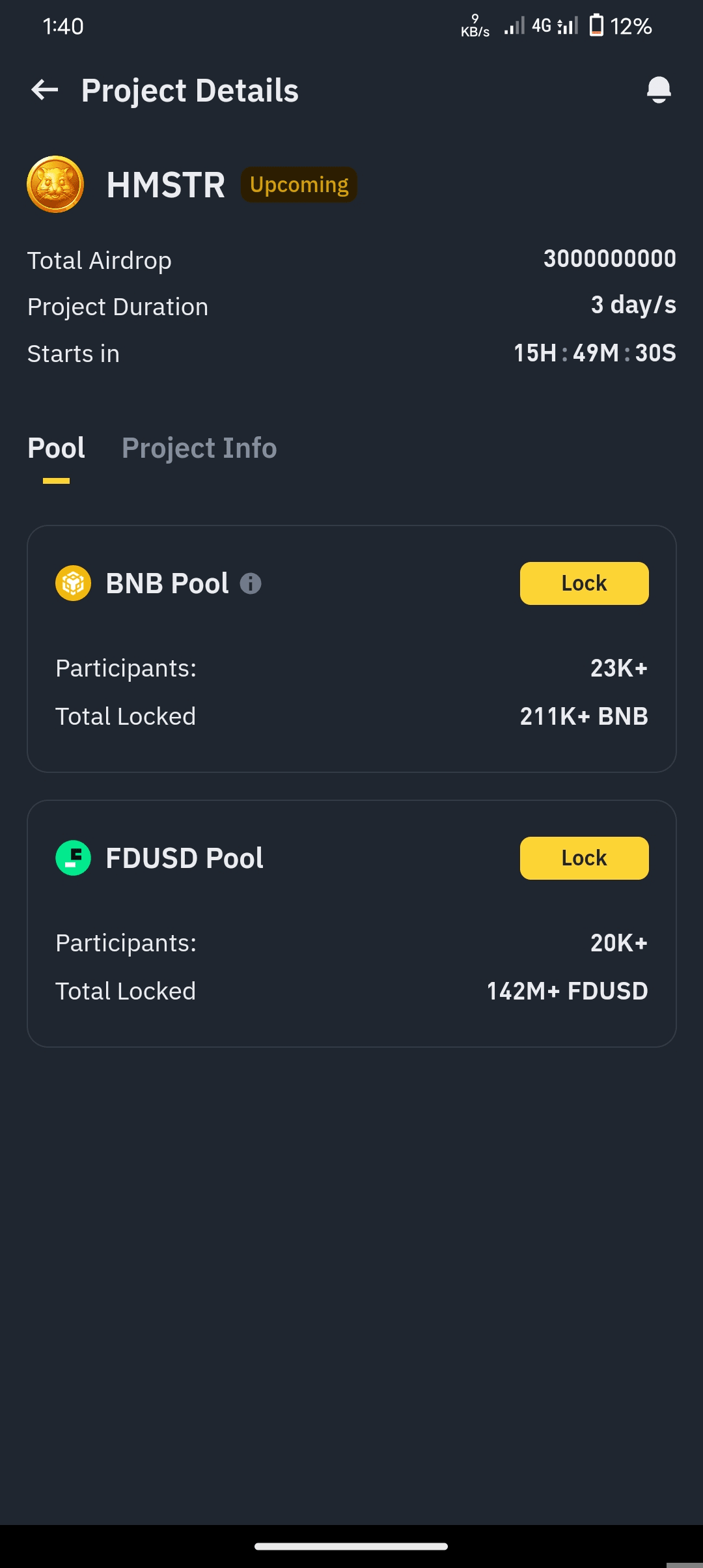 Ouais les gars, c'est comme ça, à partir de maintenant, vous verrez Hamster Kombat dans la section Lunchpool de BINANCE. Maintenant, votre temps d'attente n'est que de 12 heures, allez-y vite et vérifiez votre section Lunchpool dans Binance, vous verrez le nom HMSTR qui signifie Hamster Kombat.