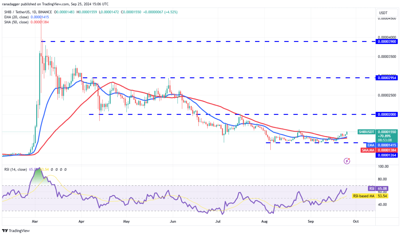 Shiba Inu (SHIB) a rebondi sur la moyenne mobile le 24 septembre, indiquant un changement de sentiment de vente à la hausse à achat à la baisse.