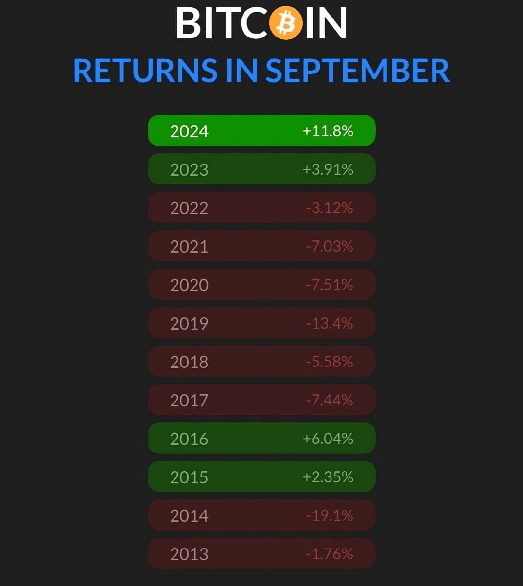 De loin le meilleur mois de septembre pour#Bitcoin✅
