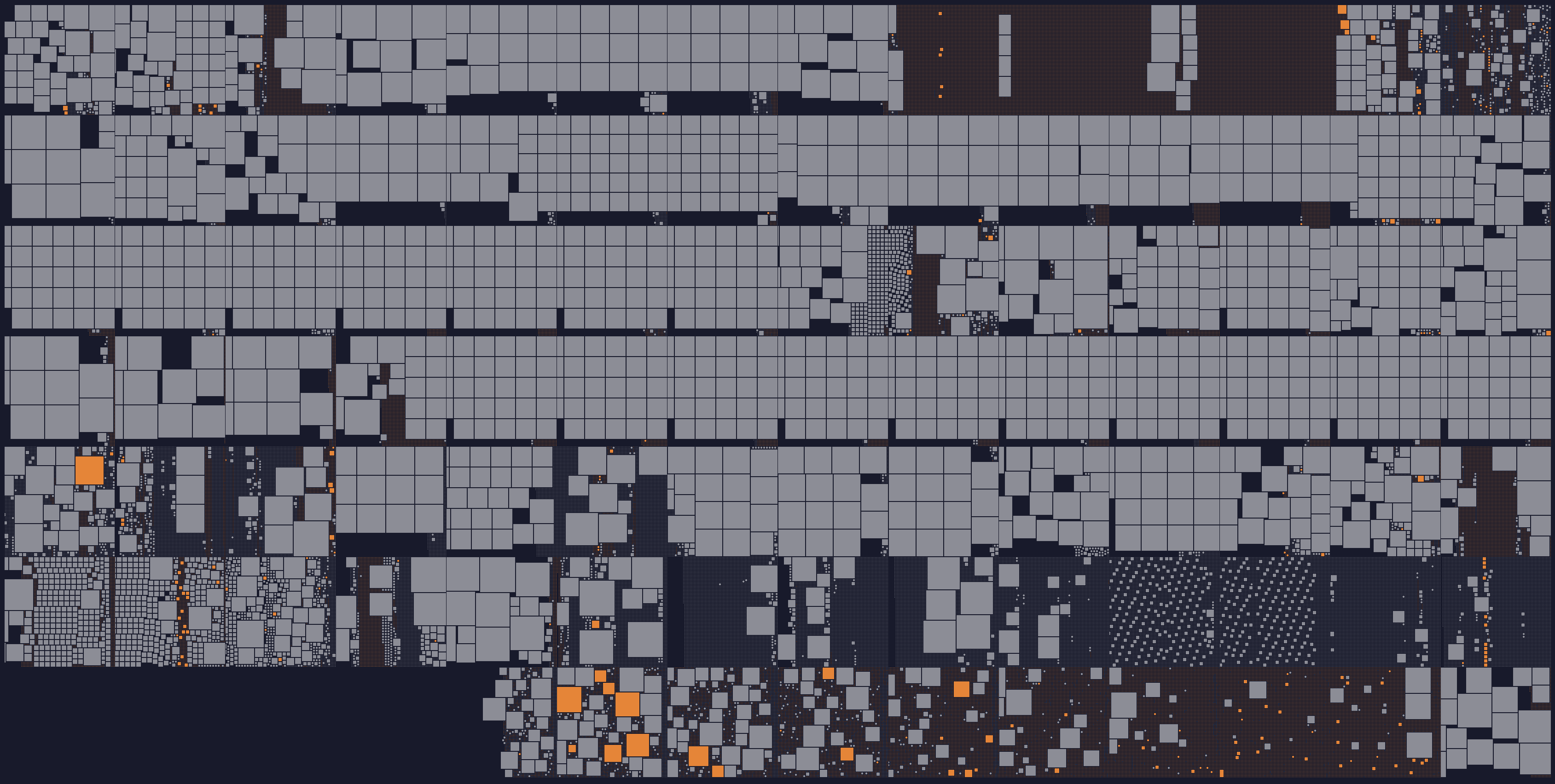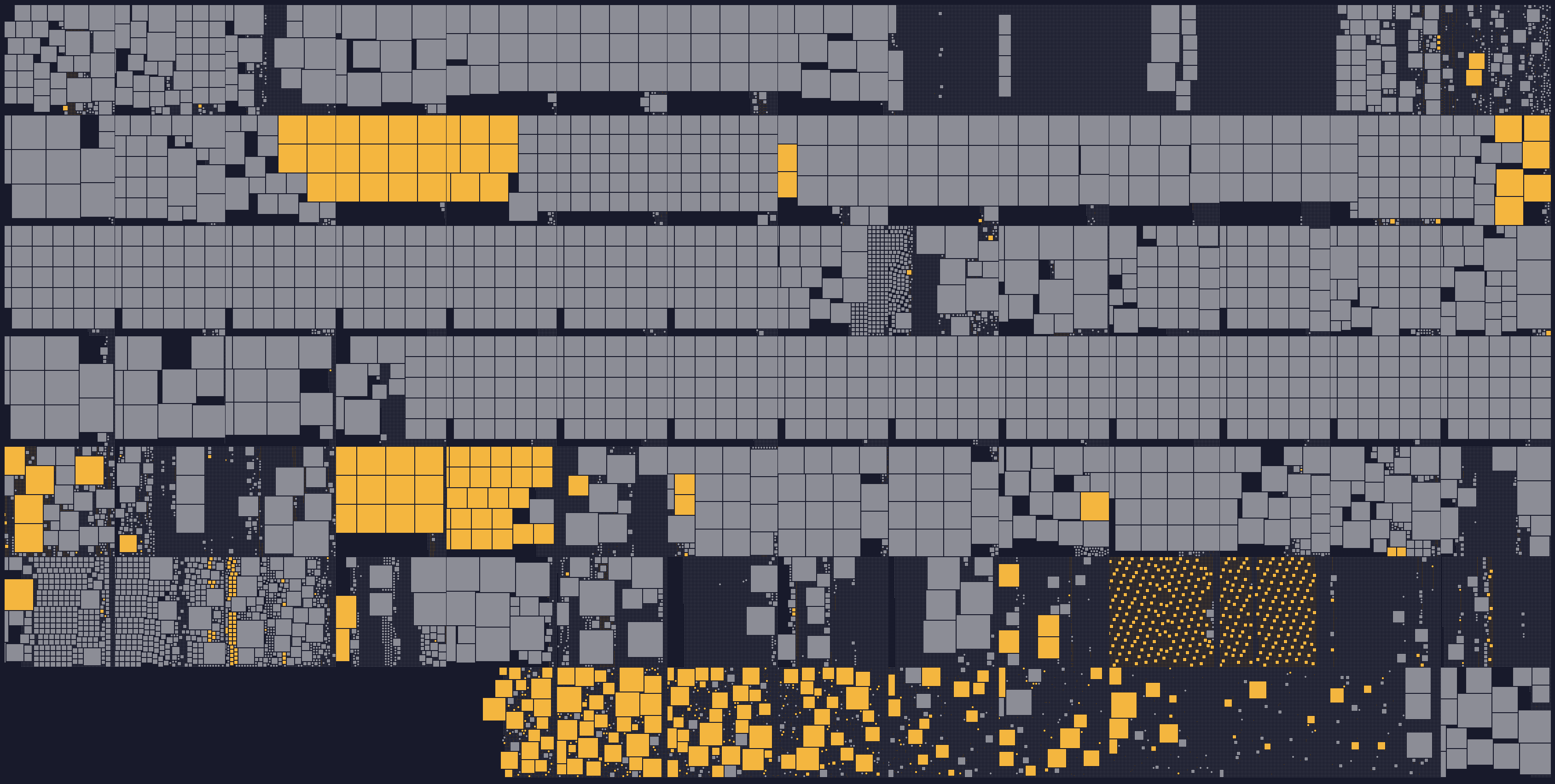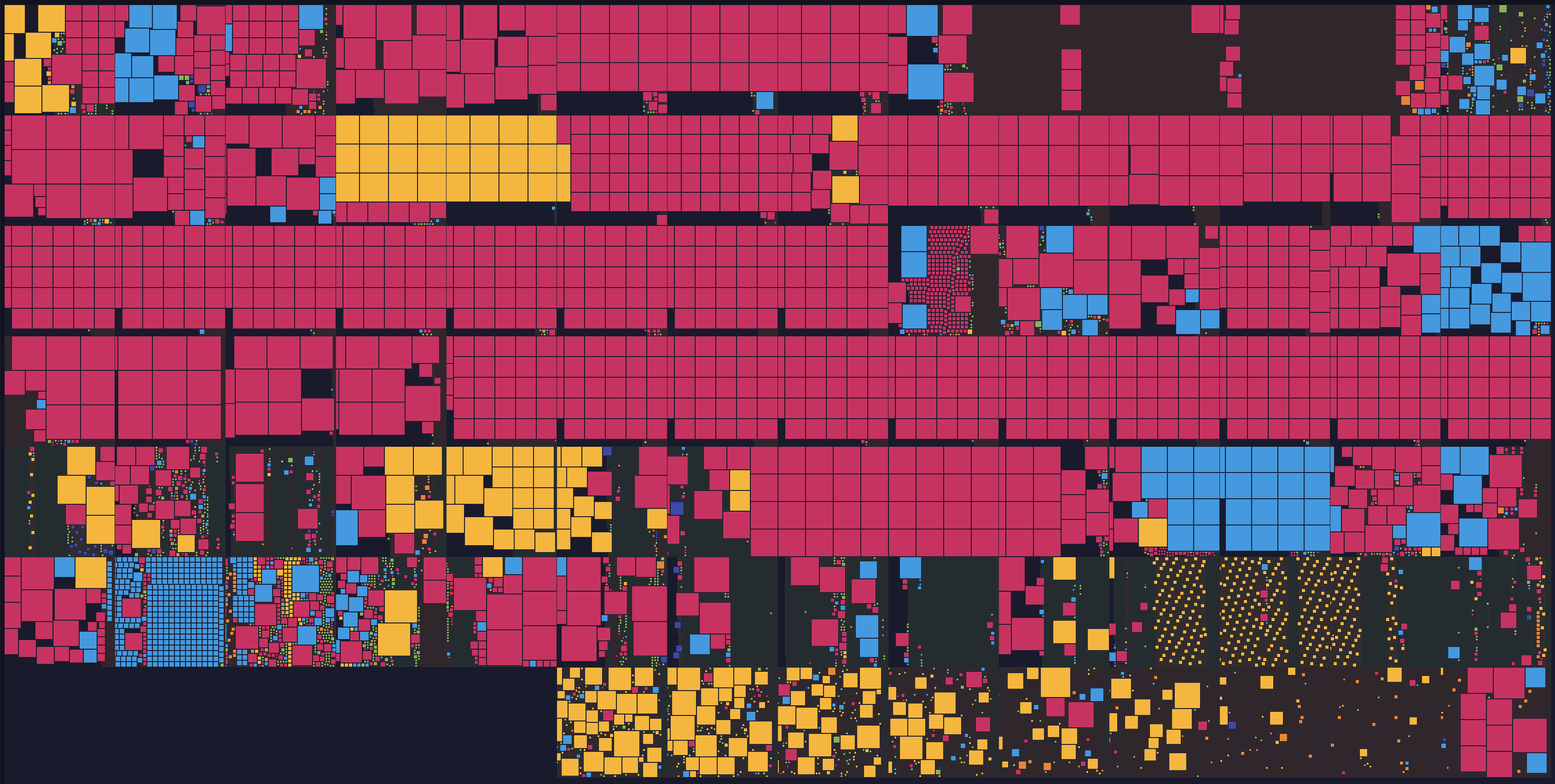 voici un aperçu de l'ensemble de mon mempool, codé par couleur par type de transaction.