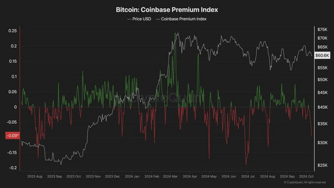 L'indice Bitcoin Coinbase Premium est un indicateur clé permettant d'évaluer si les investisseurs institutionnels américains ou les grands traders achètent ou vendent activement sur Coinbase par rapport aux autres plateformes d'échange. Actuellement, l'indice affiche des valeurs négatives, indiquant un sentiment baissier sur le marché, avec soit une pression vendeuse importante, soit une pause dans l'accumulation des grands investisseurs.