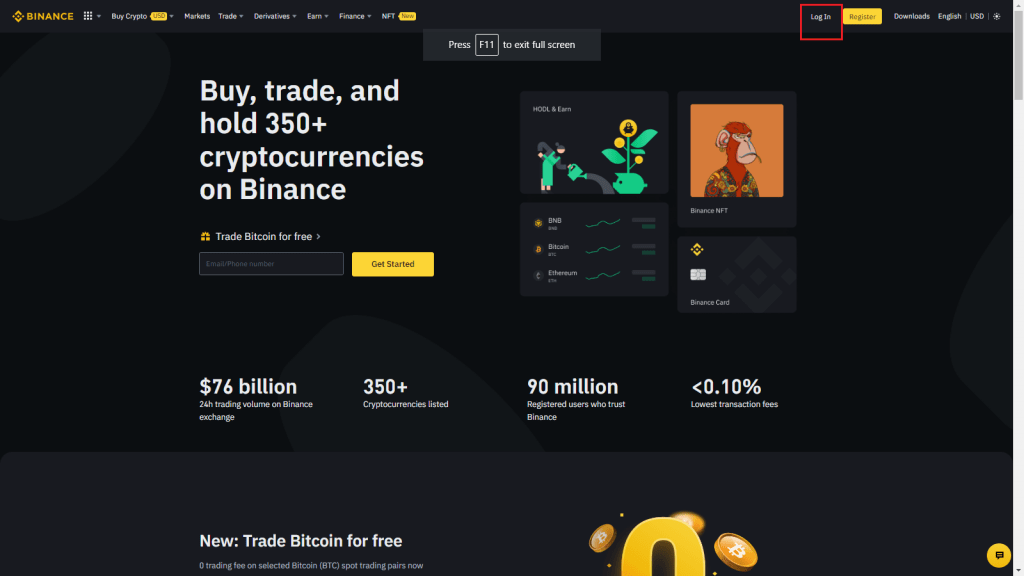 1. Connectez-vous Ă Binance : Tout dâabord, assurez-vous dâavoir un compte Binance vĂ©rifiĂ©. Si vous ĂȘtes nouveau, vous pouvez vous inscrire et suivre le processus de vĂ©rification.