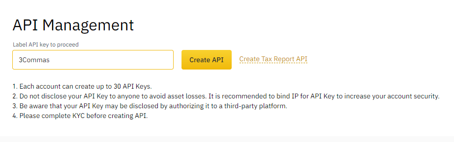 2. Créez une clé API : dans votre compte Binance, accédez à la section Gestion des API. Créez une nouvelle clé API en lui donnant un nom. Activez des options pertinentes telles que le trading au comptant, le trading à terme et bien plus encore, en fonction de vos besoins.