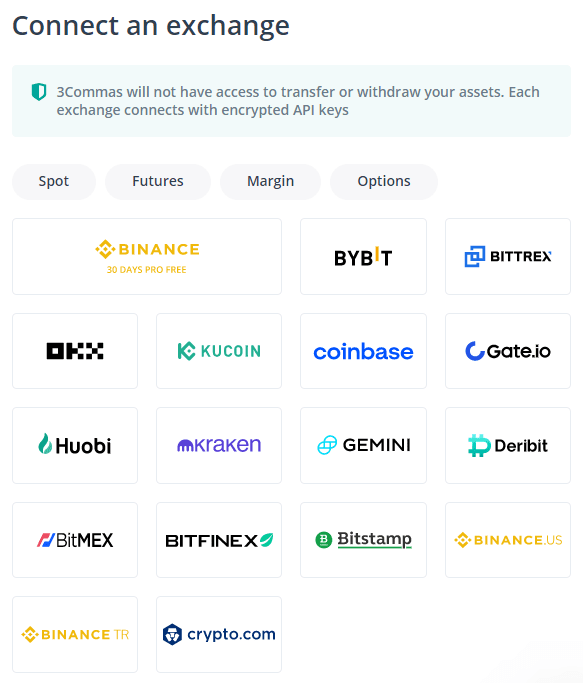 1. 3Commas : Avec une solide expérience et une gamme de robots, 3Commas offre une interface conviviale et propose un essai gratuit de 30 jours pour les nouveaux utilisateurs de Binance.