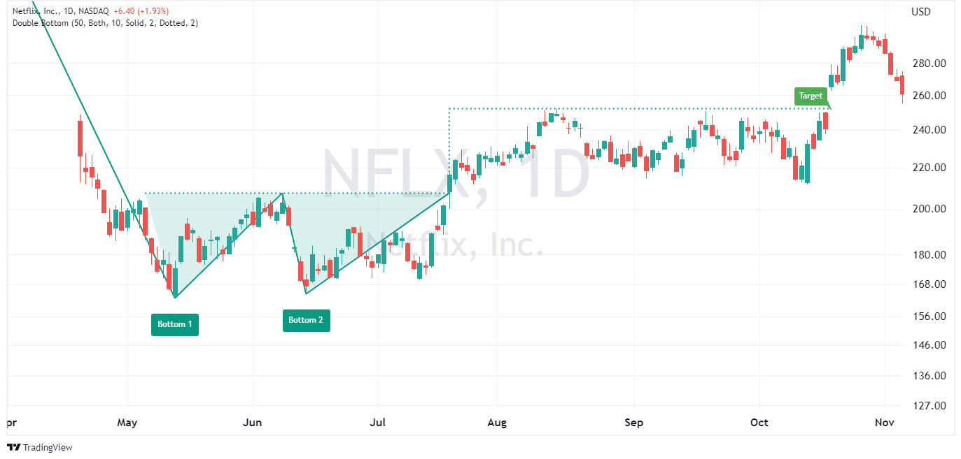 Pour identifier un modèle de graphique à double creux, les investisseurs doivent rechercher deux creux distincts dans le prix du titre qui forment un modèle en forme de « W ». En général, le modèle doit être visible sur un graphique intraday et journalier. Après avoir identifié les deux creux, les investisseurs peuvent rechercher une confirmation d'un renversement de tendance en surveillant une cassure soit au-dessus de la ligne de résistance supérieure, soit en dessous de la ligne de support inférieure.