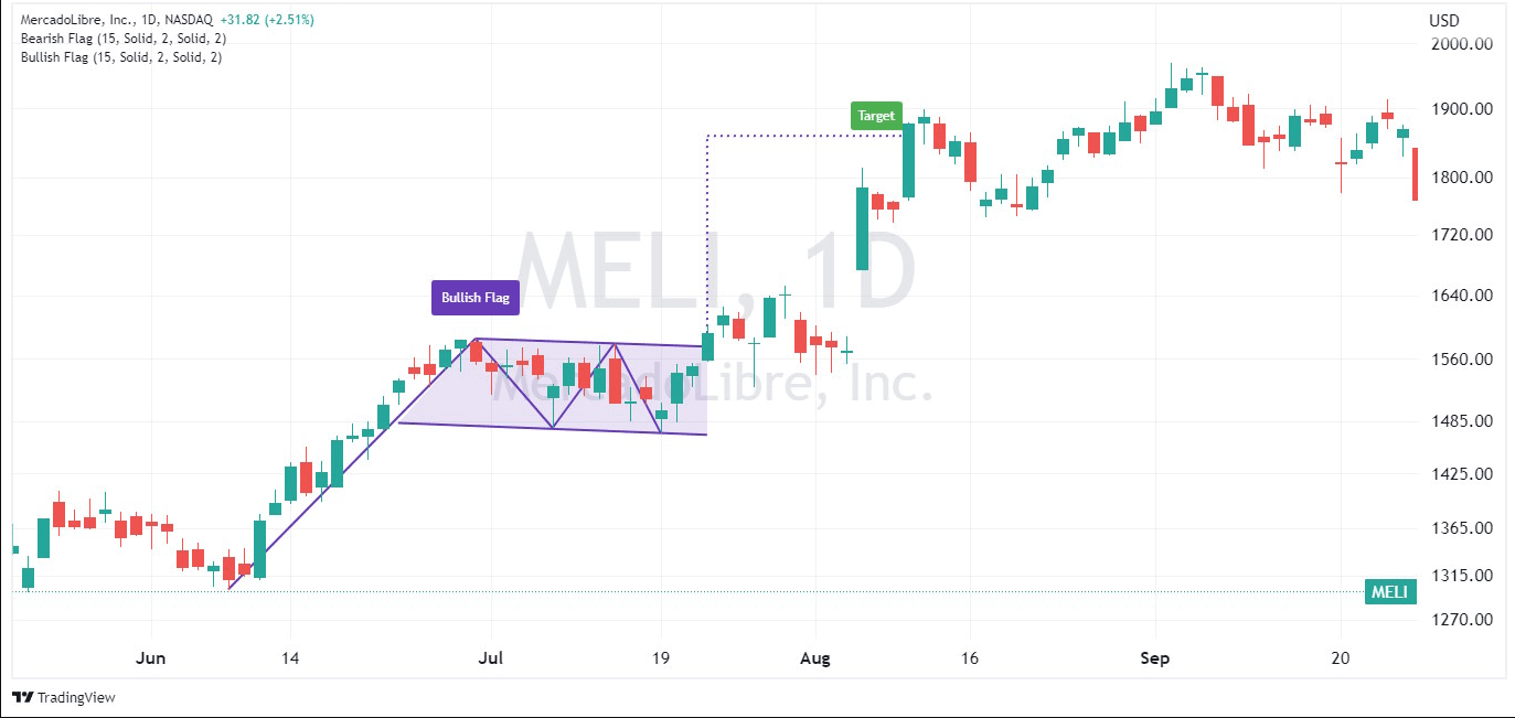 Cela se produit lorsque le prix d’un titre connaît une hausse rapide et brutale, suivie d’une période de consolidation au cours de laquelle les prix se consolident au sein de deux lignes de tendance parallèles. Ce schéma peut indiquer que le prix du titre pourrait bientôt commencer à augmenter ou à diminuer en fonction de la direction de la cassure.