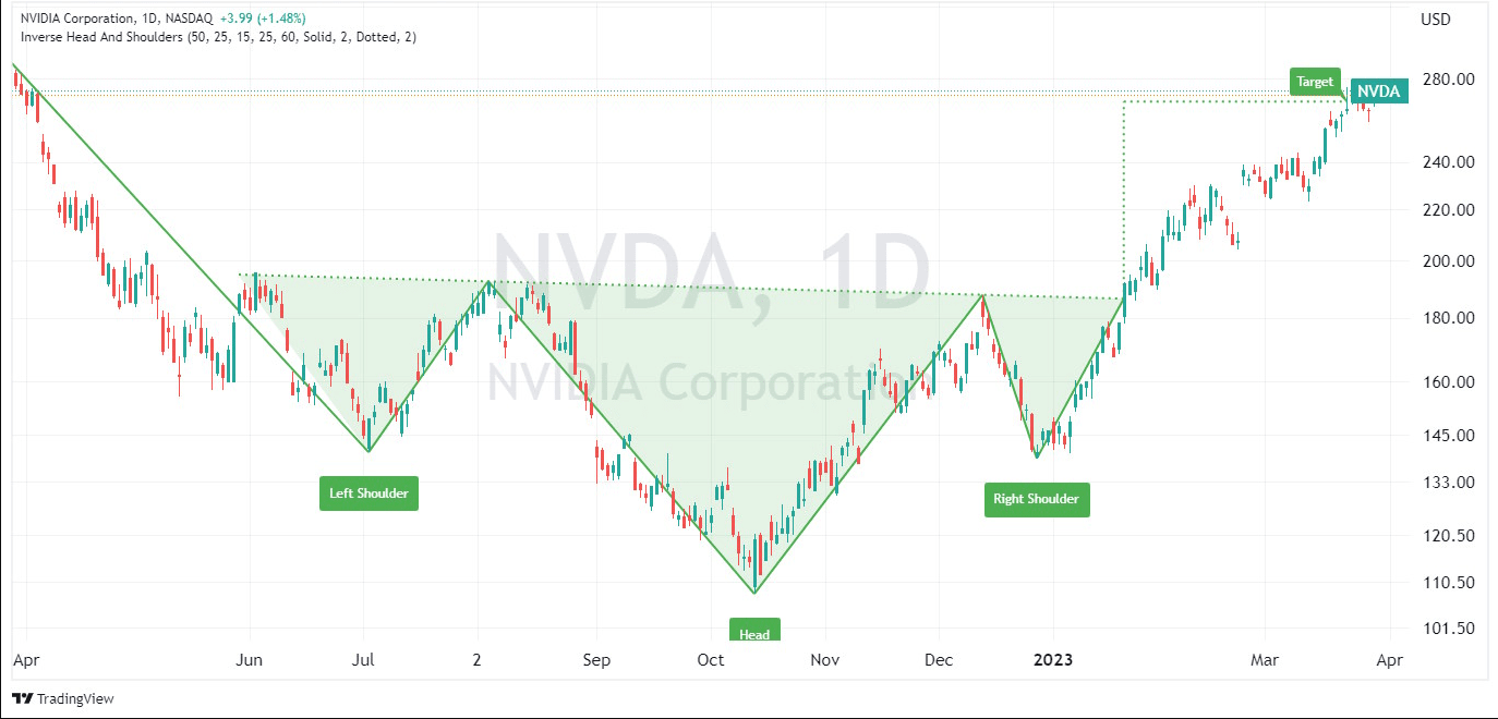 Un graphique boursier en tête-épaules inversé a un taux de réussite de 89 % pour inverser une tendance baissière existante. Avec une augmentation moyenne des prix de 45 %, il s'agit de l'un des graphiques les plus fiables.