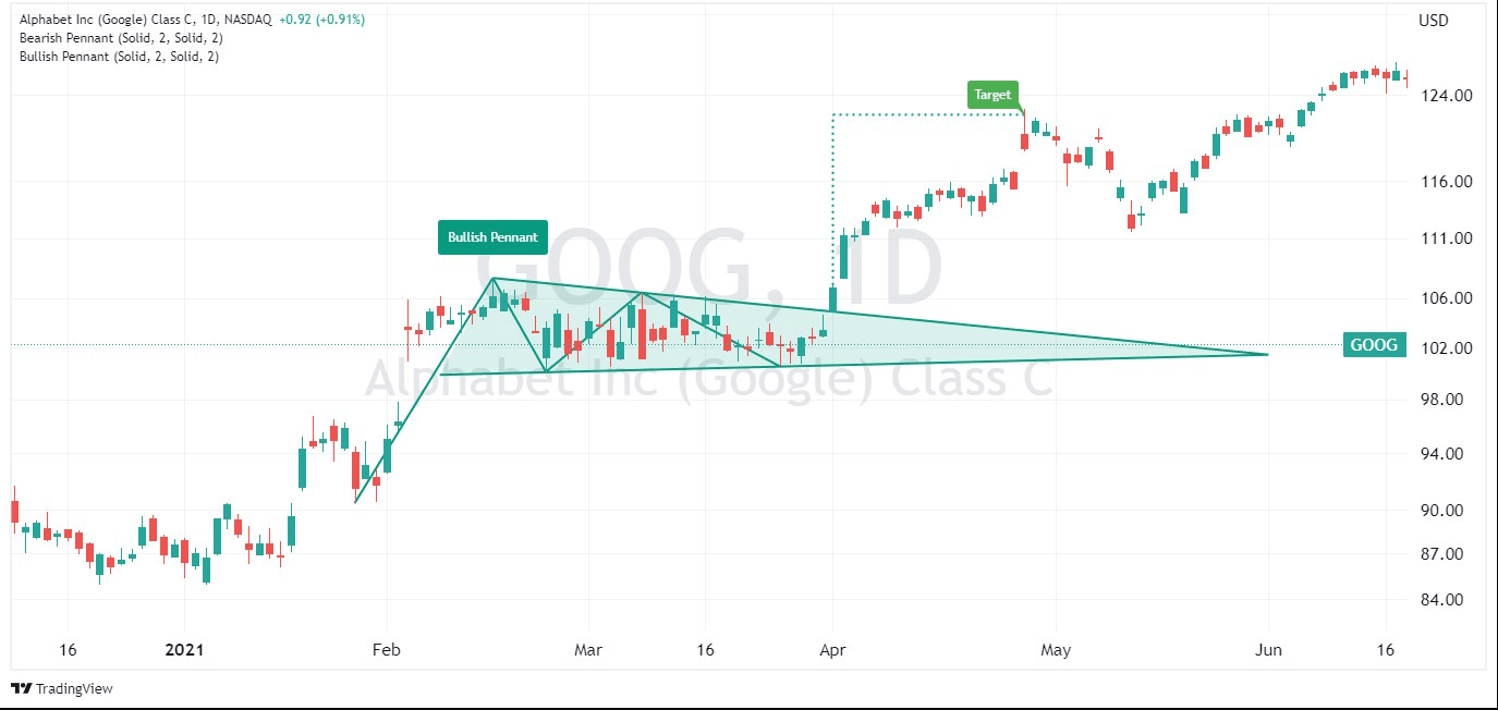 Le fanion se produit lorsque le prix d’un titre forme deux lignes de tendance convergentes qui créent un motif symétrique en forme de triangle, souvent appelé « fanion ». Ce motif peut être considéré comme une indication que la tendance actuelle du titre est susceptible de se poursuivre.