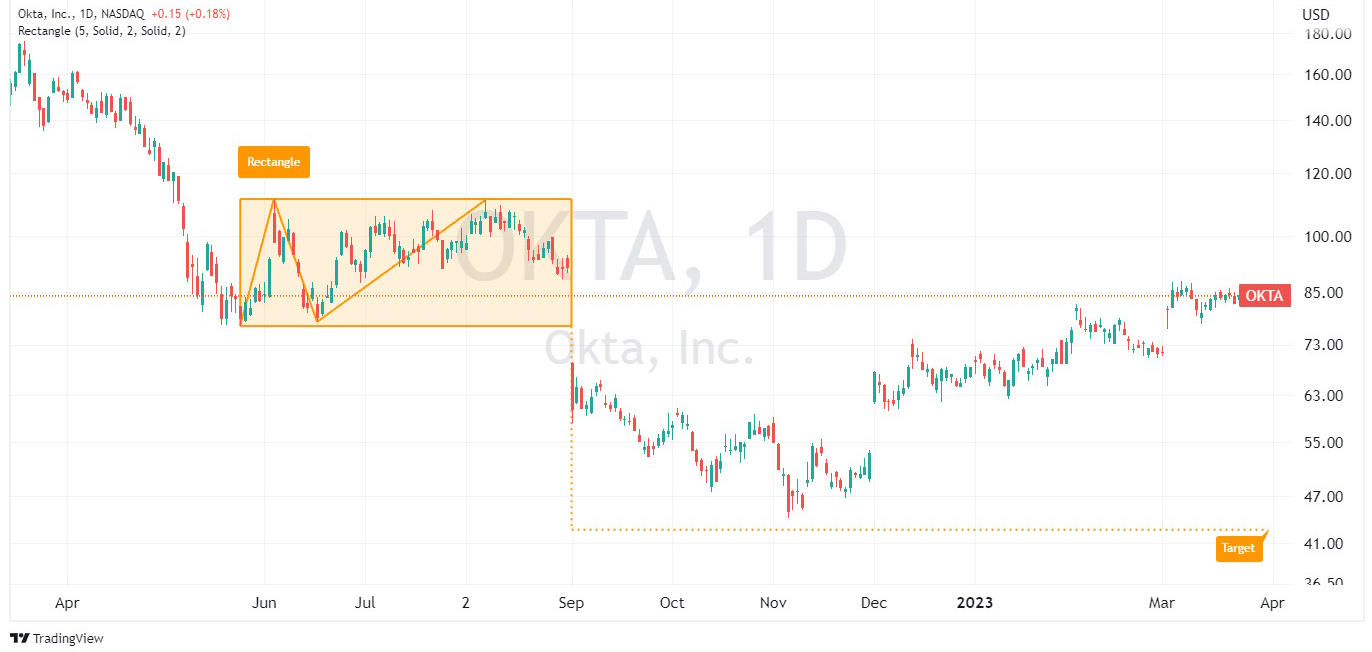 Si le prix du titre dépasse la ligne de support, cela pourrait indiquer que le titre a terminé son renversement. En revanche, une cassure au-dessus de la ligne de résistance pourrait signaler une reprise de la tendance haussière. Il convient de noter qu'il ne faut pas se fier à une confirmation supplémentaire de ce modèle de graphique boursier tant que les prix n'ont pas dépassé ces niveaux.