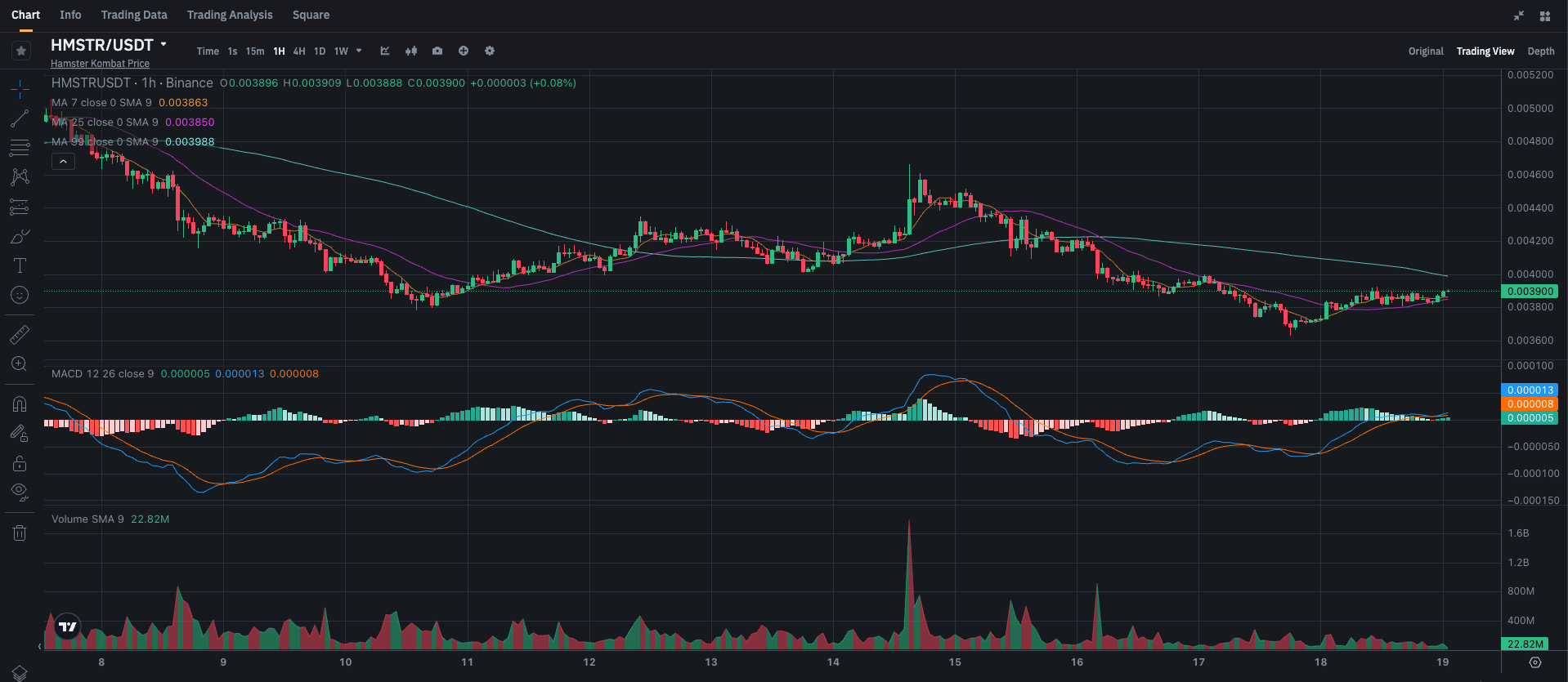 Ă premiĂšre vue, le graphique horaire du HMSTR suggĂšre un marchĂ© qui suit une tendance baissiĂšre claire, mais qui pourrait ĂȘtre sur le point de se redresser. Au cours des derniers jours, le prix a eu du mal Ă dĂ©passer les 0,004 $, mais plusieurs signaux techniques laissent penser que la tendance pourrait s'inverser.