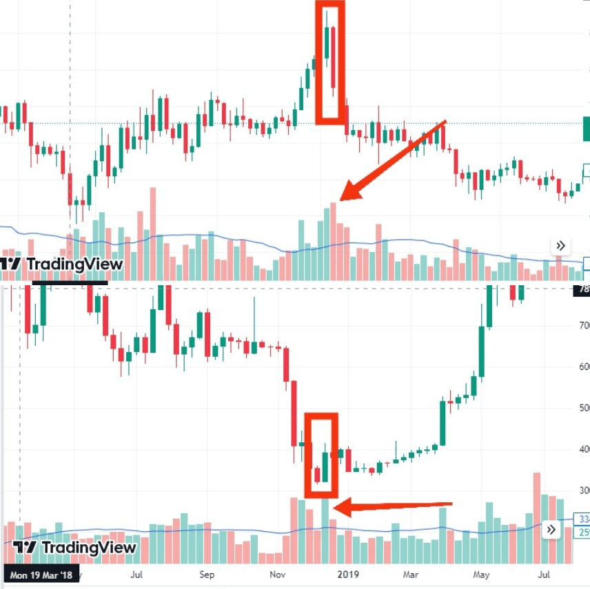 Remarque : le volume est très important dans l'analyse technique, les configurations de bougies d'inversion si le volume ne répond pas aux exigences sont des pièges de MM.
