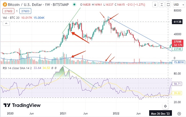 3. Divergence RSI : Lorsque la ligne de prix et les indicateurs techniques s'opposent, une divergence apparaîtra => la tendance principale du marché s'affaiblit.
