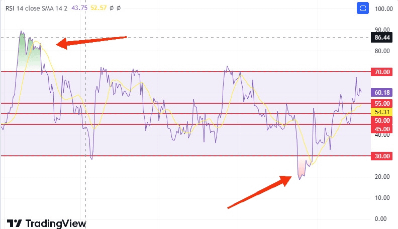 2. Jalons RSI importants auxquels vous devez prêter attention :