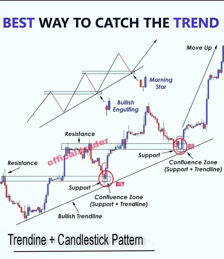 Support + Ligne de tendance : Recherchez le prix rebondissant sur la ligne de tendance, en particulier dans les zones de support précédentes.