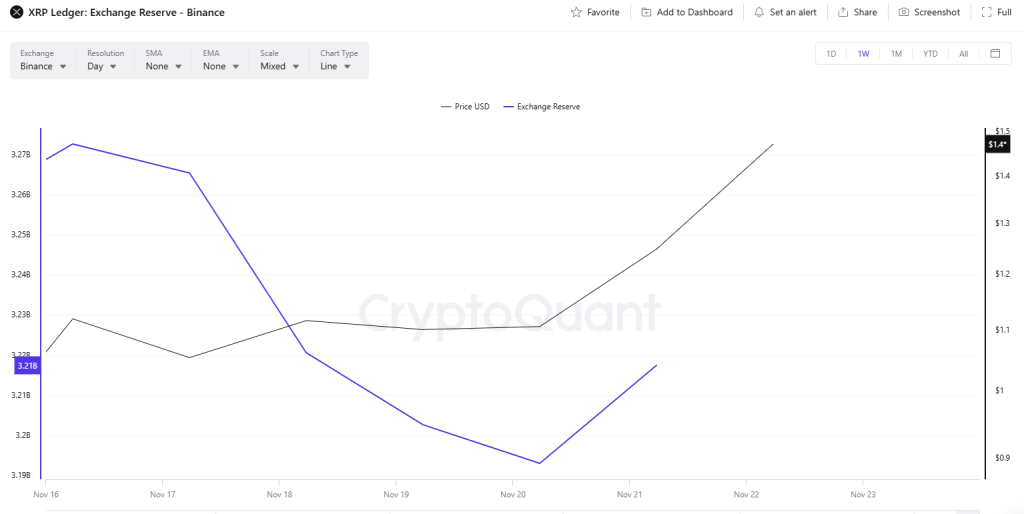 🔸En plus de l'analyse technique, les métriques on-chain soutiennent davantage la perspective positive de l'altcoin. Selon la société d'analytique on-chain CryptoQuant, les réserves d'échange de XRP continuent de diminuer, indiquant que de plus en plus d'investisseurs accumulent le jeton. Cela signale une tendance haussière et une potentielle opportunité d'achat.