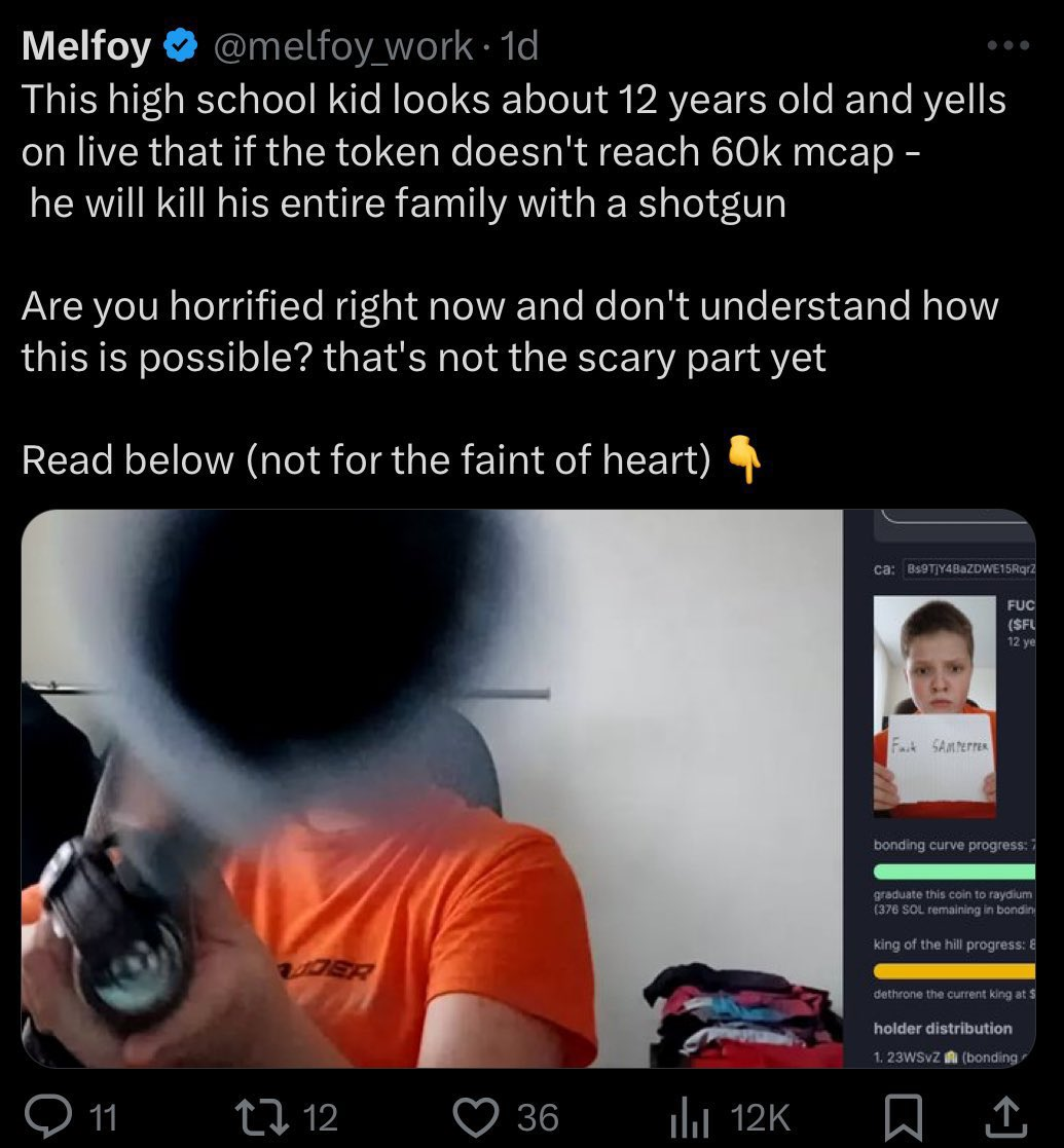 Pour stimuler l'attention et faire grimper les évaluations des jetons, les flux en direct de Pump.fun auraient présenté du contenu violent, troublant et explicite. Un nombre croissant d'utilisateurs a appelé la plateforme à désactiver sa fonctionnalité de streaming en direct, affirmant que la situation échappait à tout contrôle.
