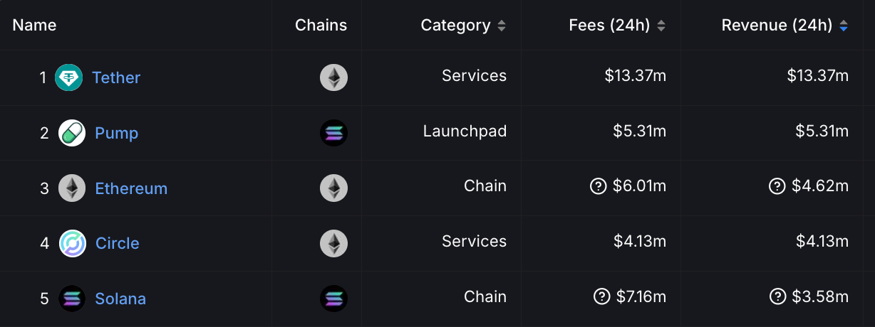 Pump.fun, une plateforme de lancement de jetons mèmes, a connu une croissance extraordinaire du nombre d'utilisateurs et des revenus du protocole au milieu du marché florissant des jetons mèmes. Les données révèlent que Pump.fun a généré 5,31 millions de dollars de revenus en 24 heures, se classant au deuxième rang des revenus quotidiens après l'émetteur de l'USDT, Tether.