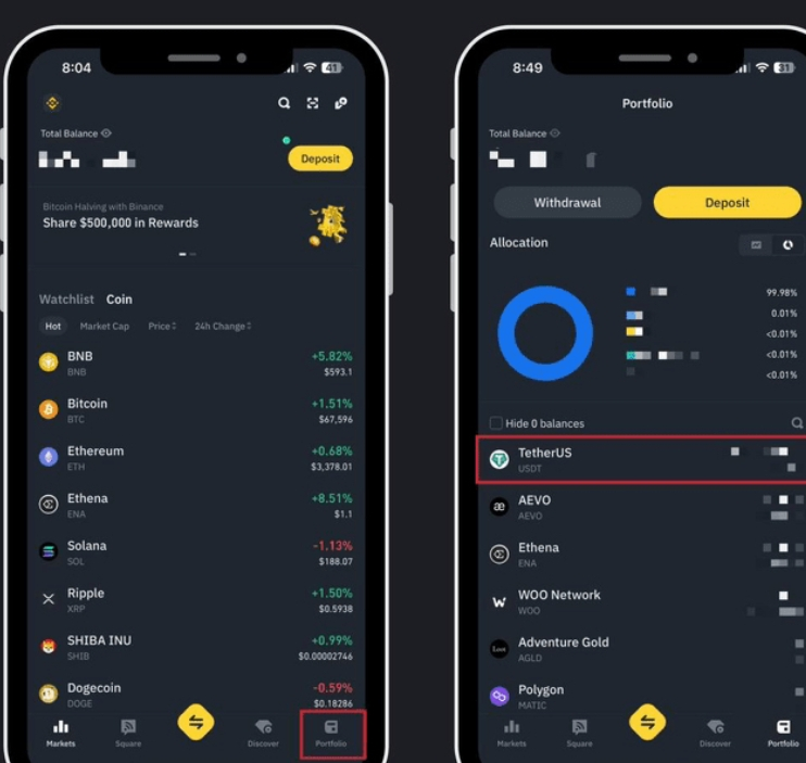 En bas à droite, appuyez sur le portefeuille. Vous y verrez les actifs que vous détenez